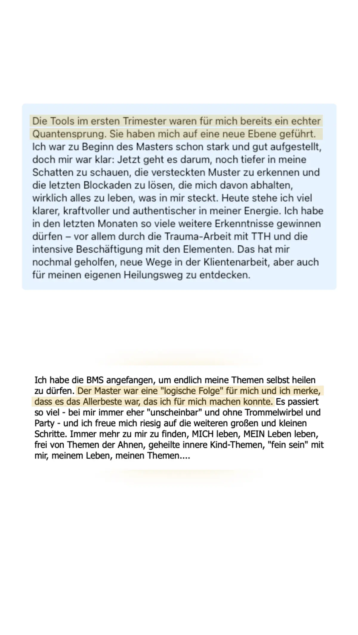 Kombiniert mit deiner Selbsterfahrung in den Modulen und Corinna’s Healing Sessions wirst du in der Lage sein dadurch noch tiefere Themen zu lösen.
