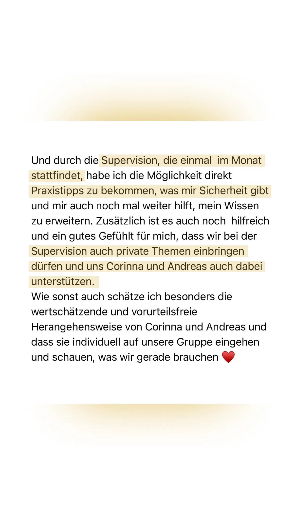 Allgemeine Fragen zu den Ausbildungsinhalten werden beim Q&A Abend besprochen. Nach jedem Trimester findet eine Supervision statt, die gleichzeitig einen Ausbildungsblock abschließt.